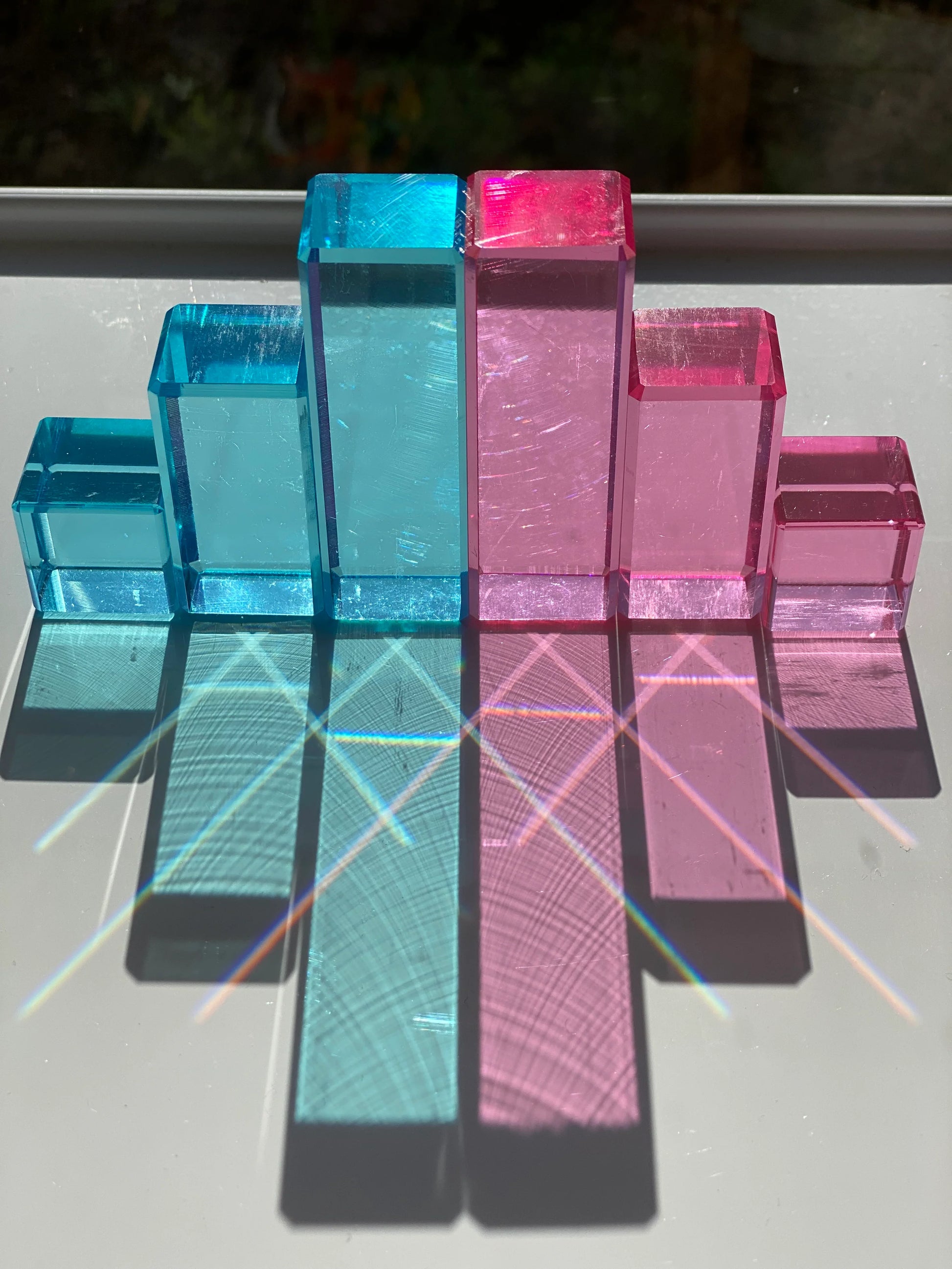Lucite Rainbow Mountain 這組群山彩虹水晶積木擁有豐富的玩法與學習可能,透光積木在陽光下特別迷人,孩子可以在室內或戶外的陽光環境中遊戲,觀察光線穿透後產生的色彩變化。