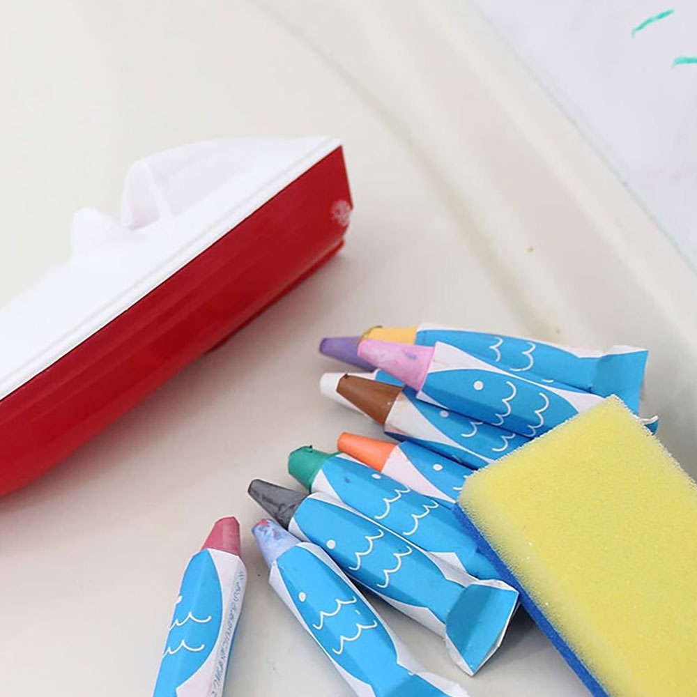 • 在潮濕的表面(浴室牆壁、浴缸、鏡子)上也能流暢地繪畫,用手指、海綿即可擦拭